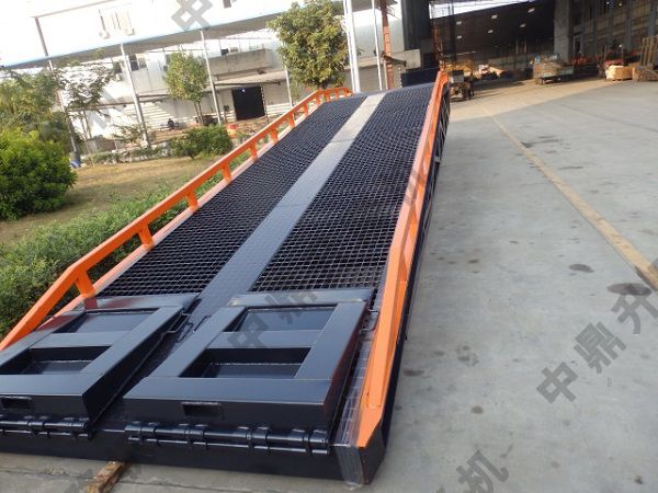 3.移動式登車橋臺面突然傾斜要檢查油缸是不是正常的,還有就是支架是不是發生外力彎曲的情況,這時還需要仔細檢查登車橋油管有沒有異物堵塞,是否會造成不同步現象發生。