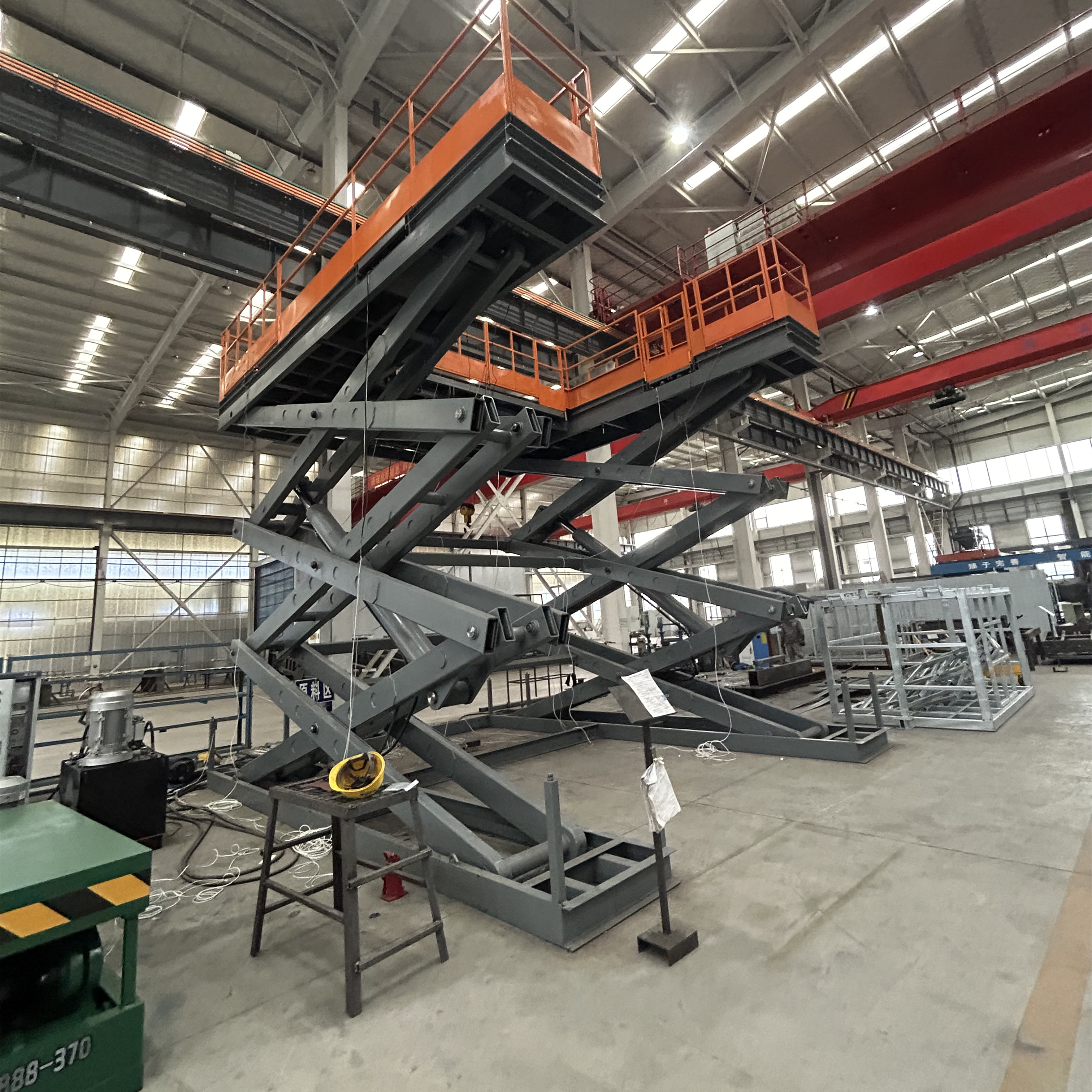 每個液壓驅動的坑式安裝的剪叉式升降機的平臺升降機,在每只腳下設置了帶有電纜傳感器的平臺下方的升降機,