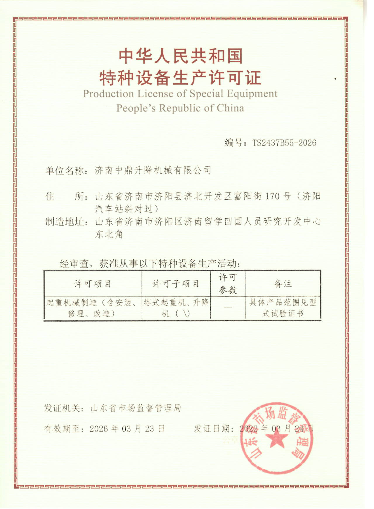 特種設備證書