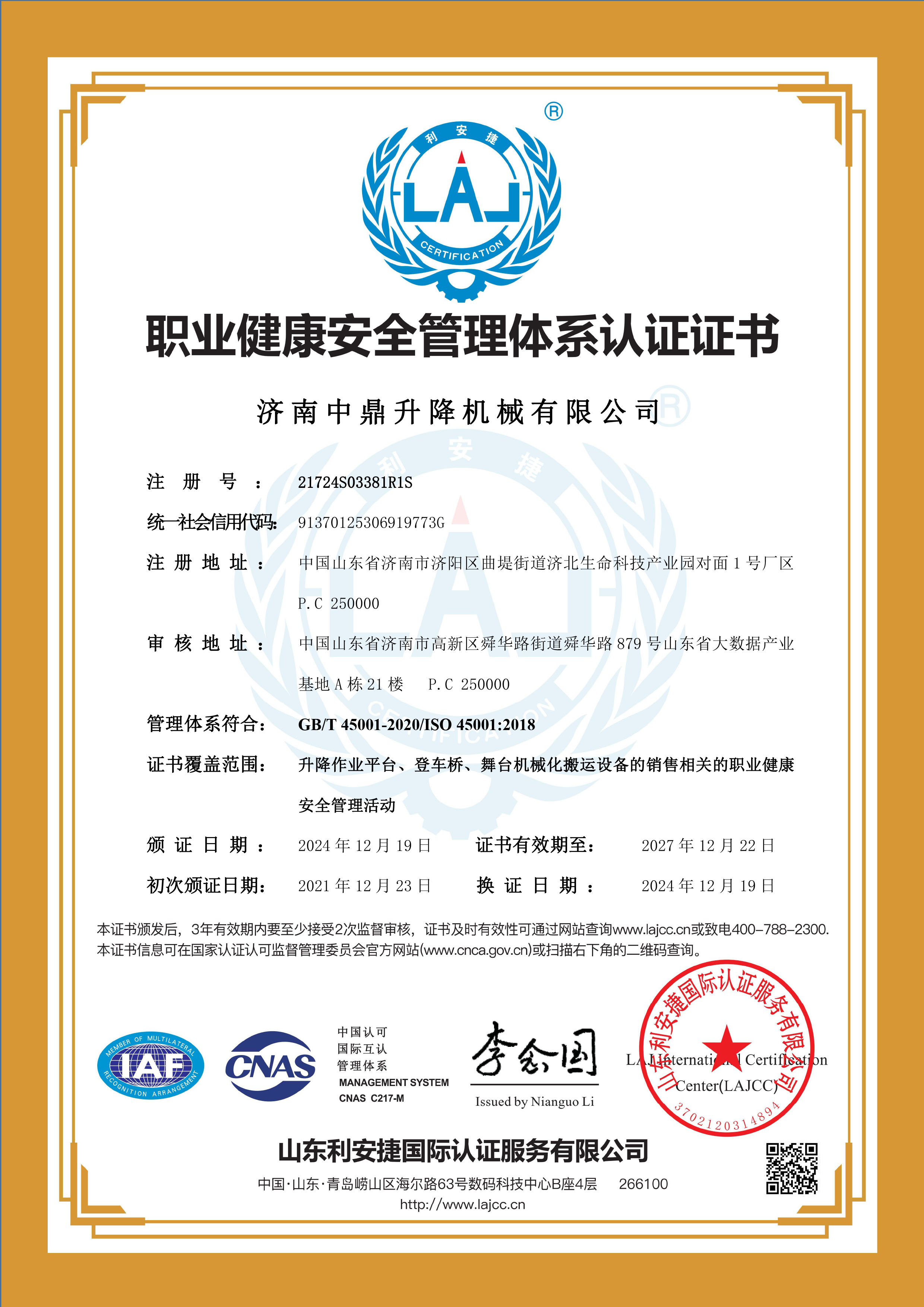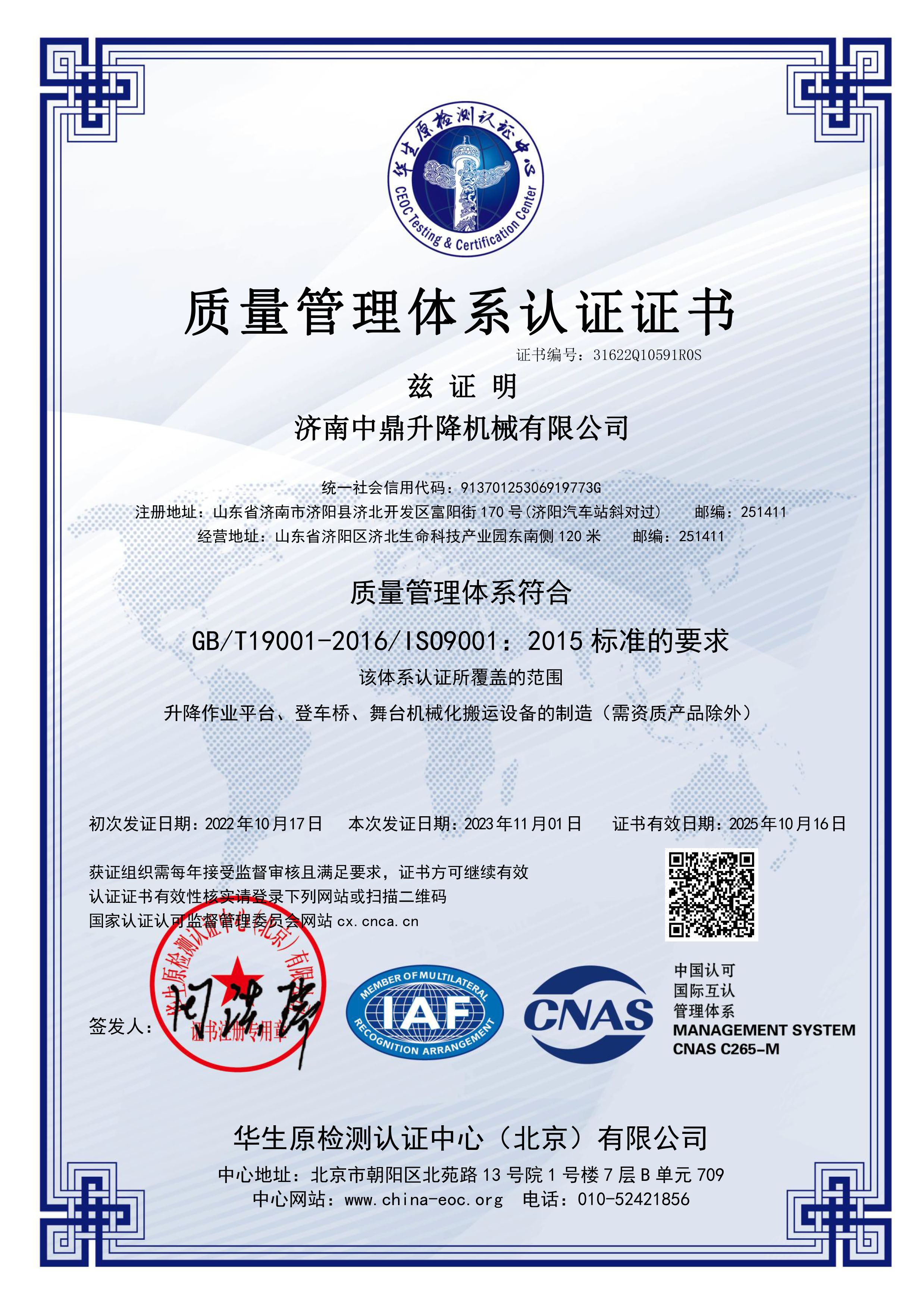 中鼎ISO9001質量管理體系證書中文版